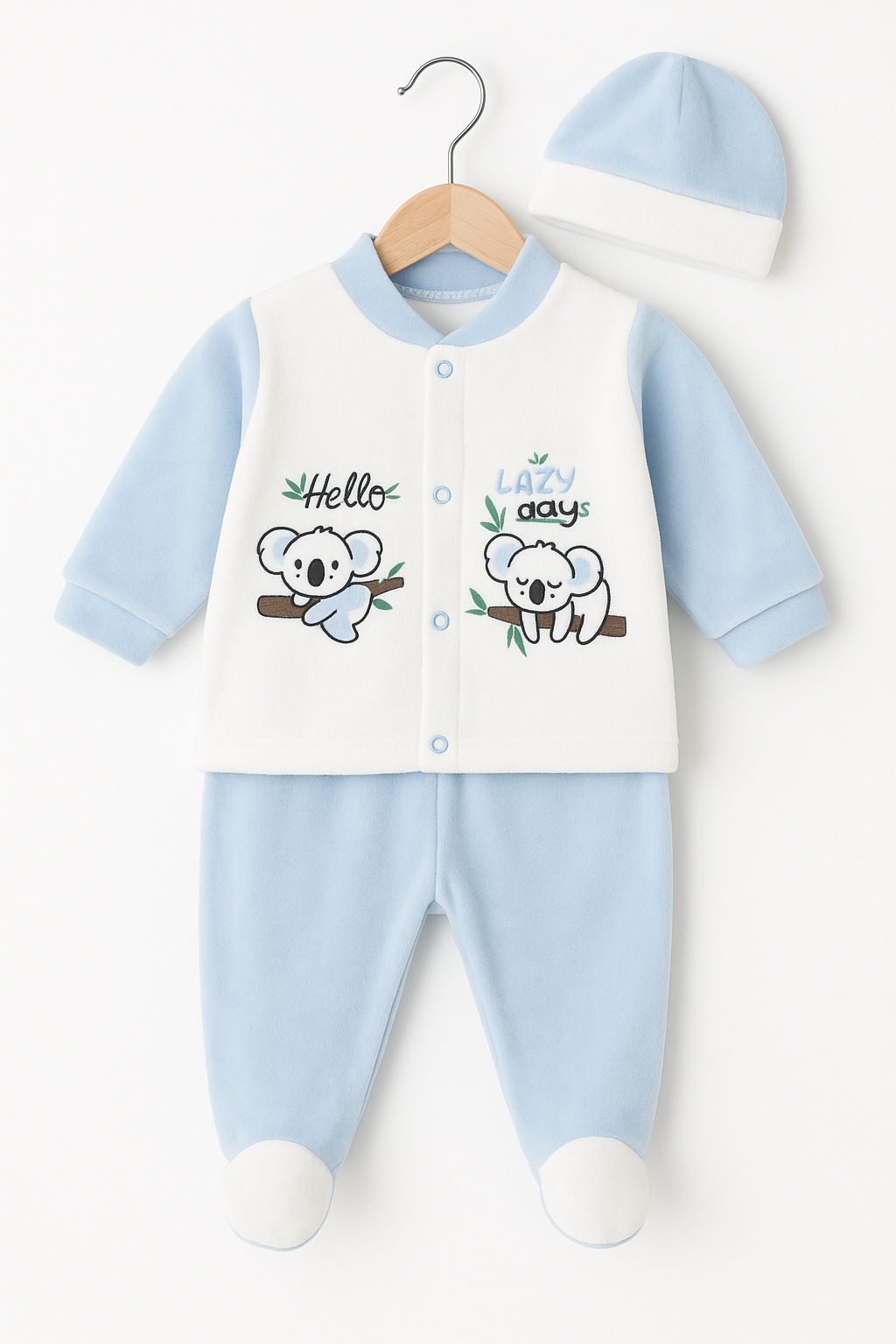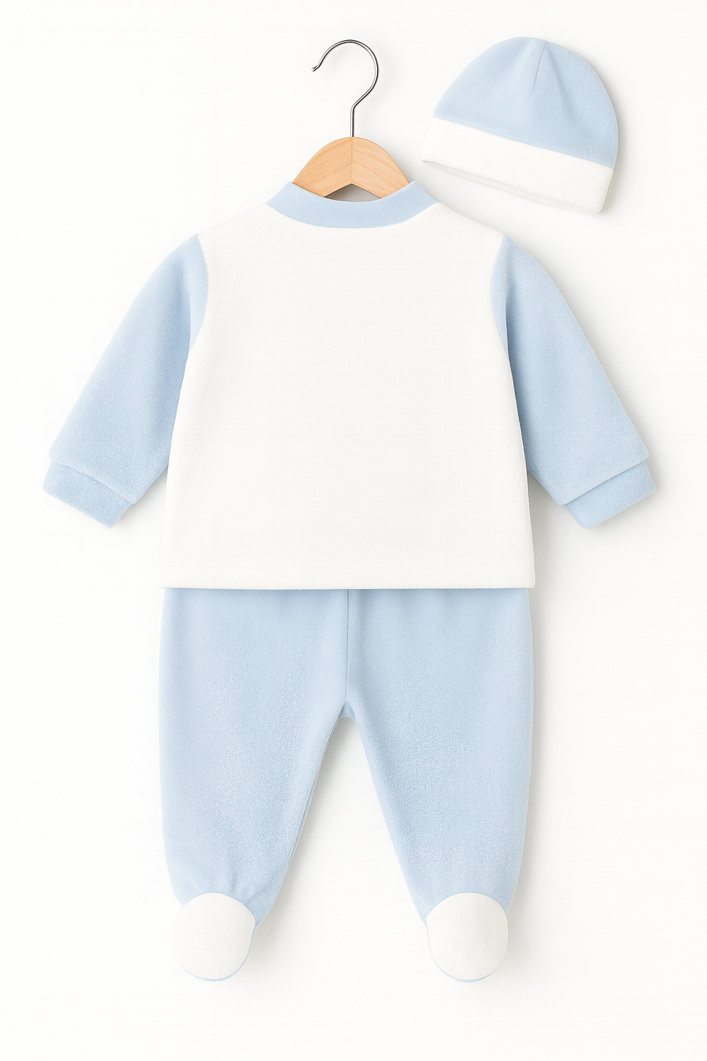 Geef je kleintje het allerbeste comfort met dit schattige 3-delige babysetje, perfect voor dagelijks gebruik, kraamcadeaus of newborn shoots. Het setje bestaat uit een zacht jasje, comfortabele footed pants en een bijpassend mutsje. Gemaakt van een superzachte, warme stof die heerlijk aanvoelt op de gevoelige babyhuid.