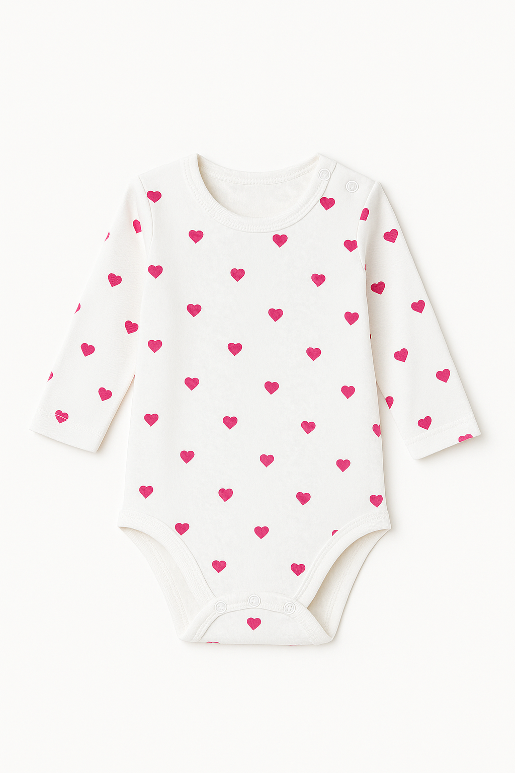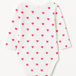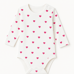 Laat je kleintje stralen in deze schattige hartjes romper met lange mouw! Deze romper is gemaakt van extra zachte, ademende katoen, waardoor hij heerlijk comfortabel zit op ieder moment van de dag. De all-over hartjesprint geeft een lieve, speelse look – perfect voor dagelijkse outfits, als kraamcadeau of voor speciale momenten zoals Valentijnsdag.