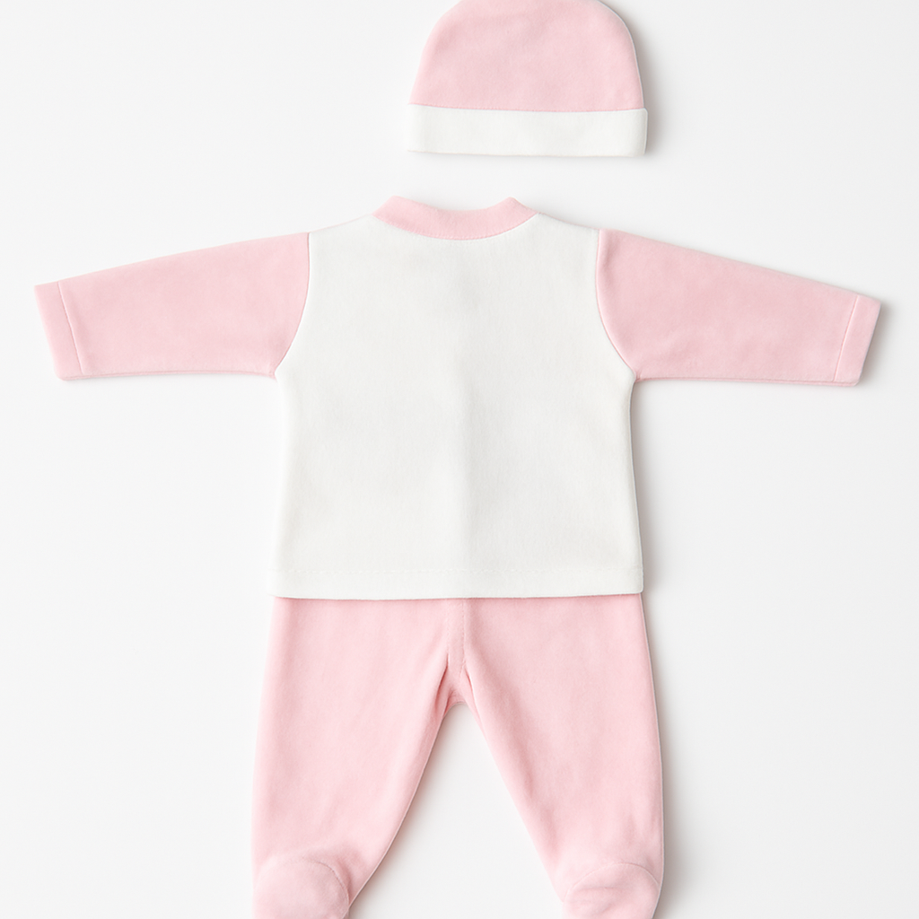 Geef je kleintje het allerbeste comfort met dit schattige 3-delige babysetje, perfect voor dagelijks gebruik, kraamcadeaus of newborn shoots. Het setje bestaat uit een zacht jasje, comfortabele footed pants en een bijpassend mutsje. Gemaakt van een superzachte, warme stof die heerlijk aanvoelt op de gevoelige babyhuid.