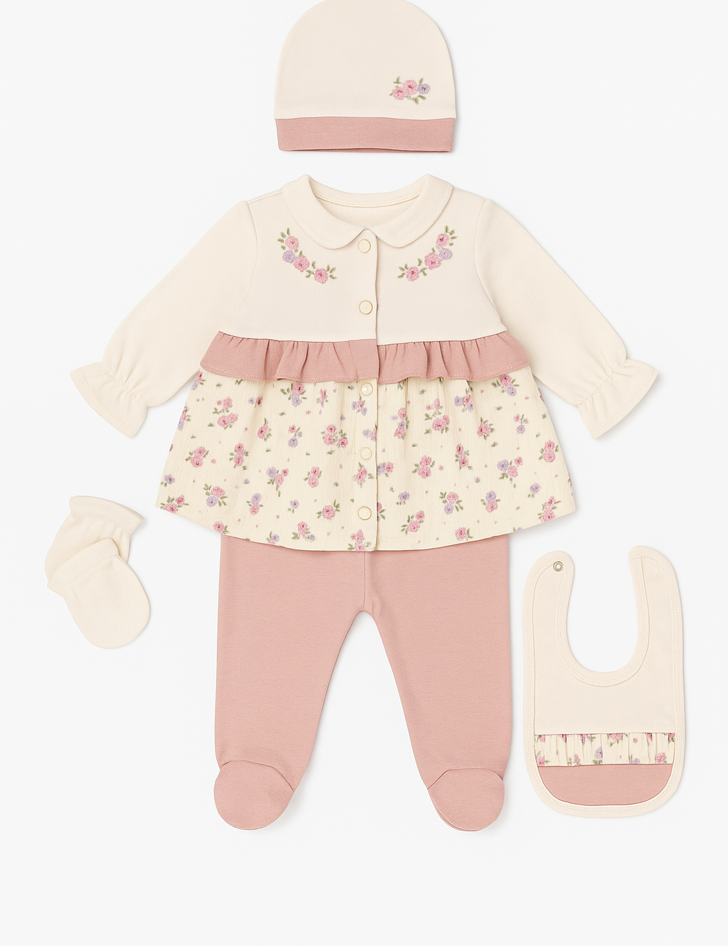 Little Blossom, 7-Delige Baby newborn Set Beige