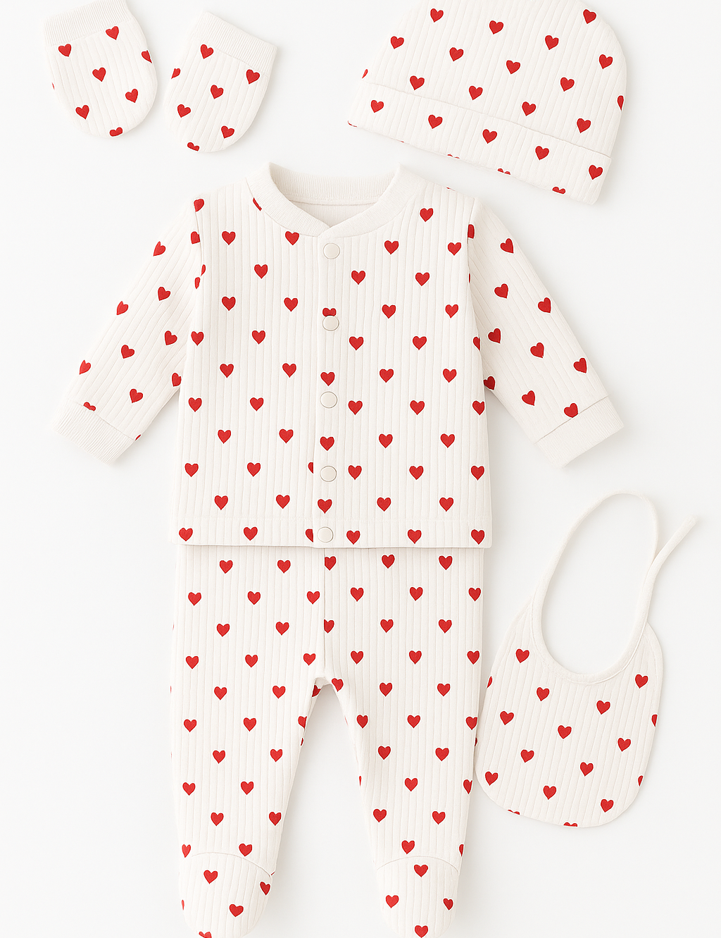 My First Hearts Baby Newborn Set 5-Delig ROOD