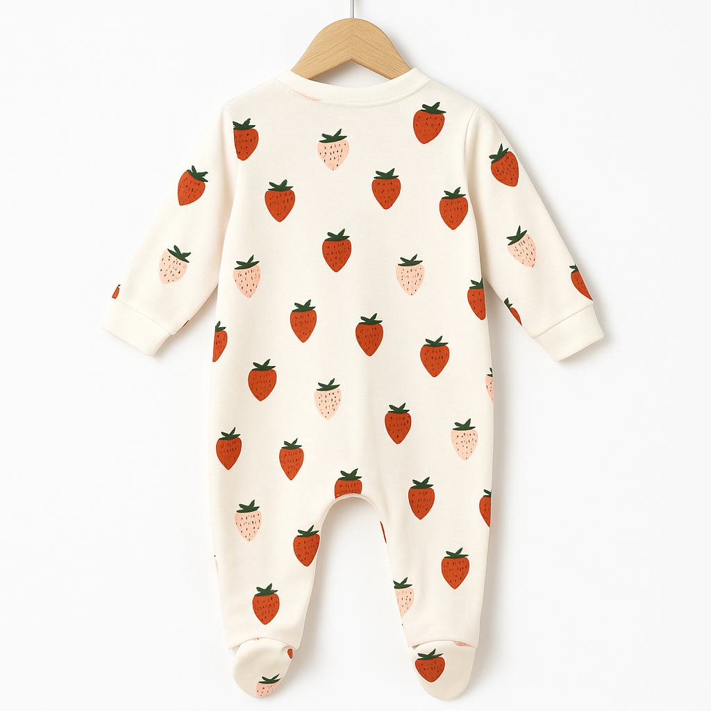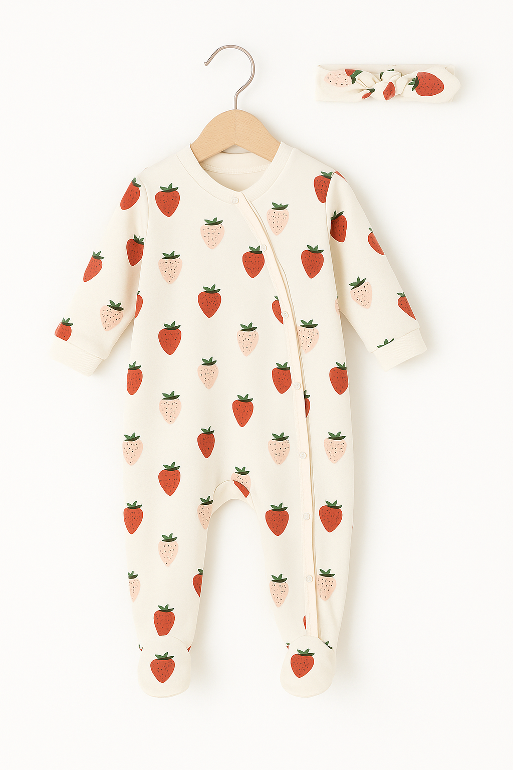 De Little Strawberry Onesie is een zachte en comfortabele babypakje met een speels en vrolijk motief. De ademende katoenstof voelt prettig aan op de huid en maakt dit pakje geschikt voor zowel overdag als ’s nachts. Dankzij de doorlopende sluiting aan de voorzijde gaat verschonen snel en eenvoudig, wat ideaal is voor dagelijks gebruik.