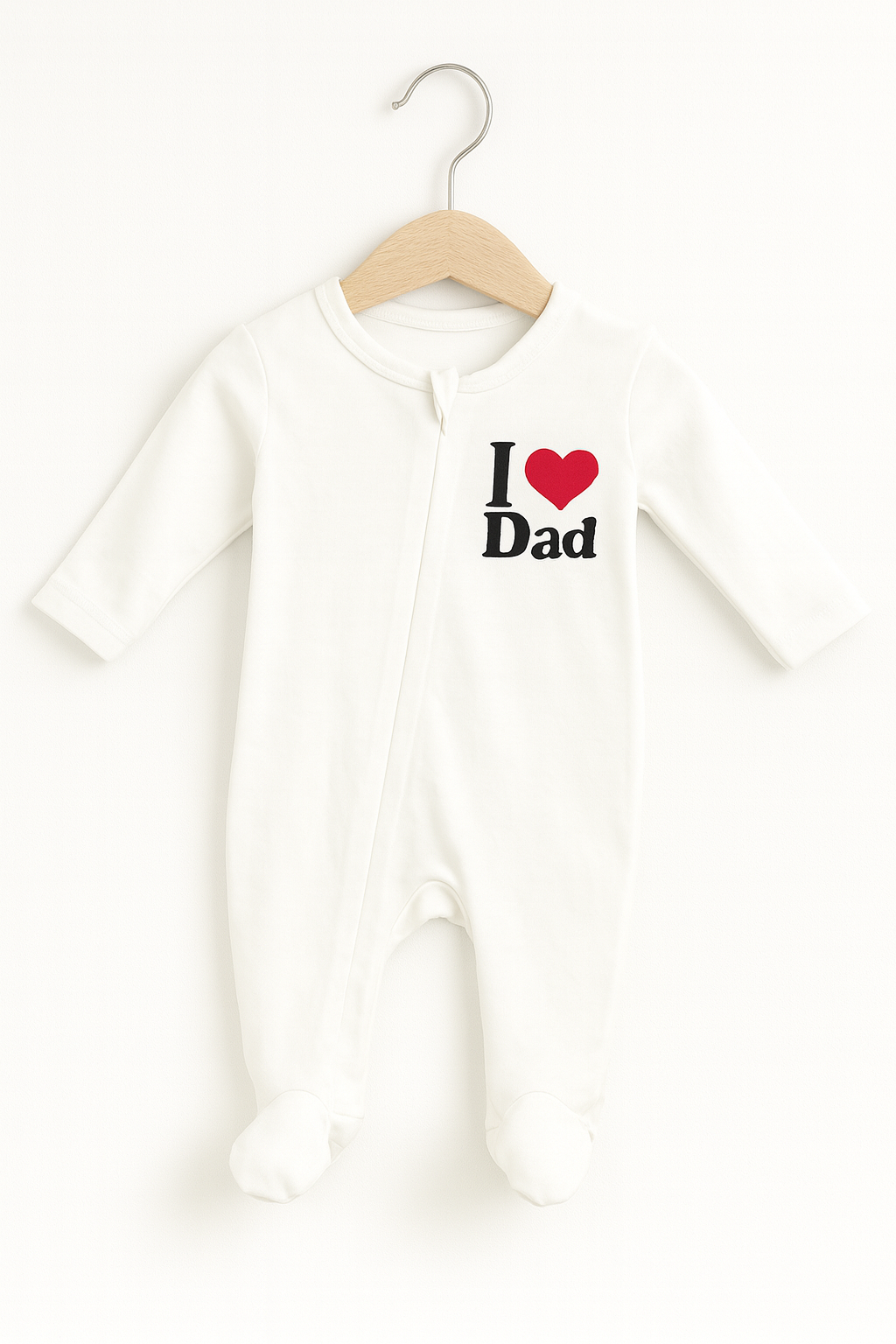 De schuine rits maakt verschonen eenvoudig en snel, wat ideaal is voor ouders die geen drukknopen willen gebruiken. Het tijdloze ontwerp met de I Love Dad opdruk maakt dit pakje geschikt voor dagelijks gebruik, cadeaus en speciale momenten waarop Papa extra in het zonnetje mag staan.
