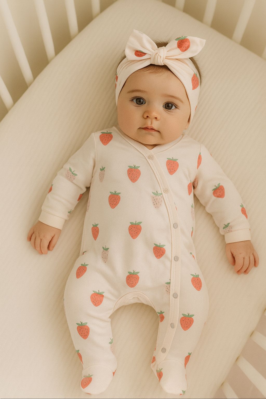 De bijpassende haarband met strik maakt de outfit compleet en geeft je kleintje een extra lieve uitstraling. De onesie biedt voldoende bewegingsvrijheid en draagt heerlijk zacht, waardoor je baby zich de hele dag comfortabel voelt.
